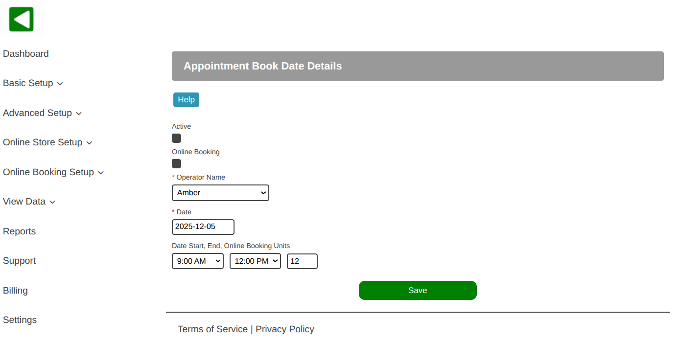 - Appointment Book is configured in the web portal, Advanced Setup, Appointment Book.